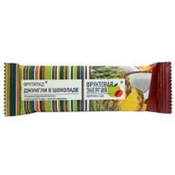 Натуральный фруктовый батончик в шоколадной глазури с кокосом и ананасом.